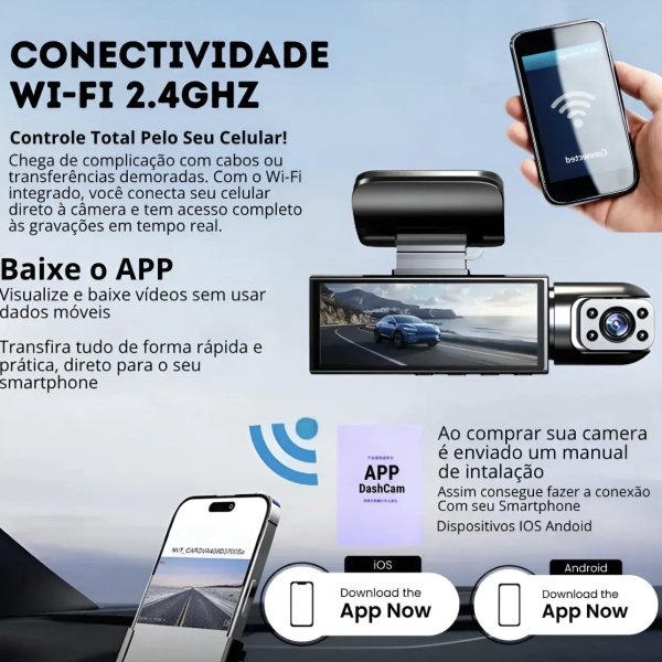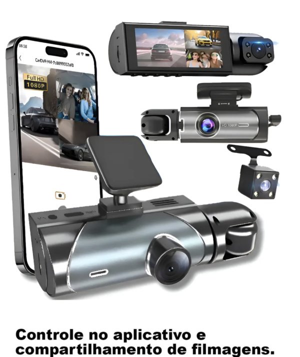 Câmara deTripla | 1080P Frontal & 720P Traseira e externa, Visão Noturna HD que pega as imagens através do aplicativo.